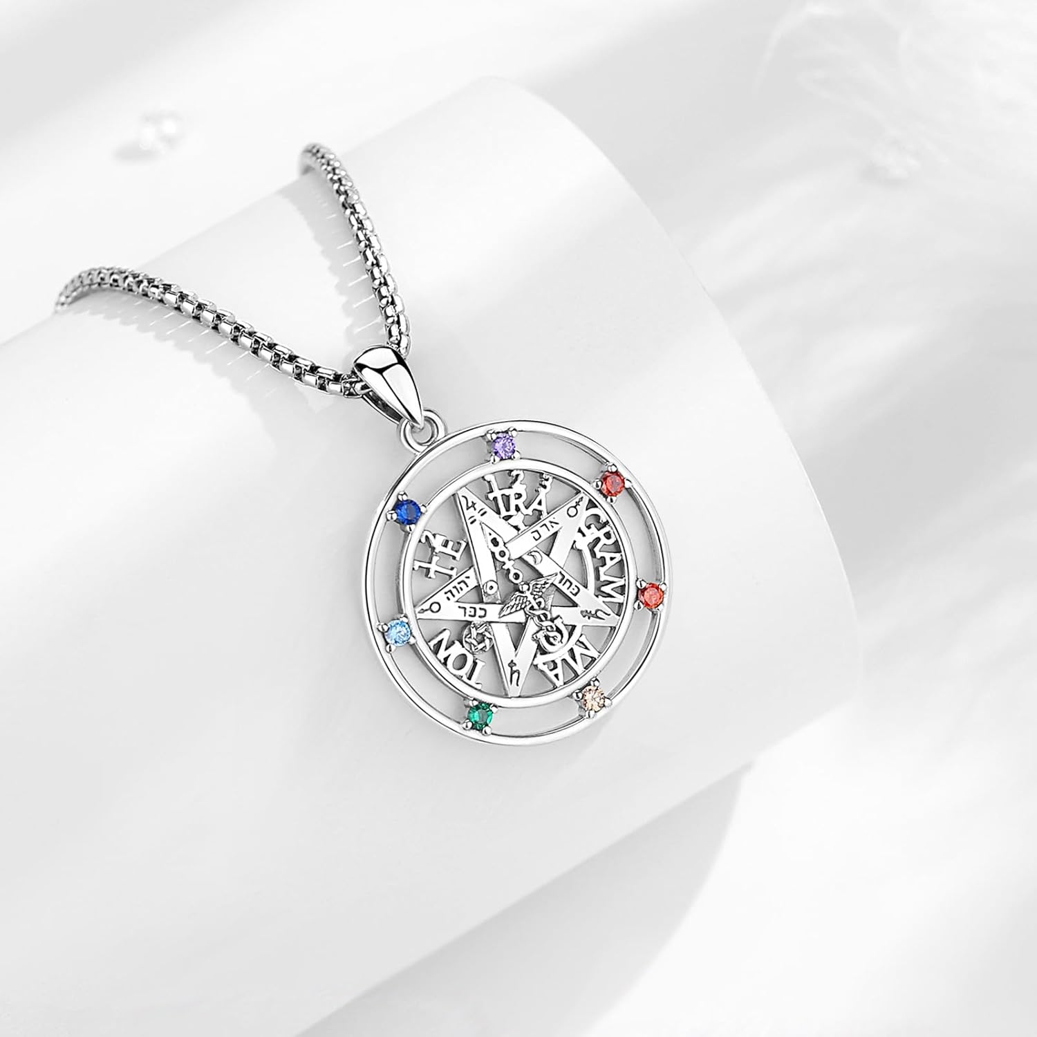 Ciondolo in Ottone Placcato Argento (TETRAGRAMMA PENTACOLO JHVH PROTEZIONE)