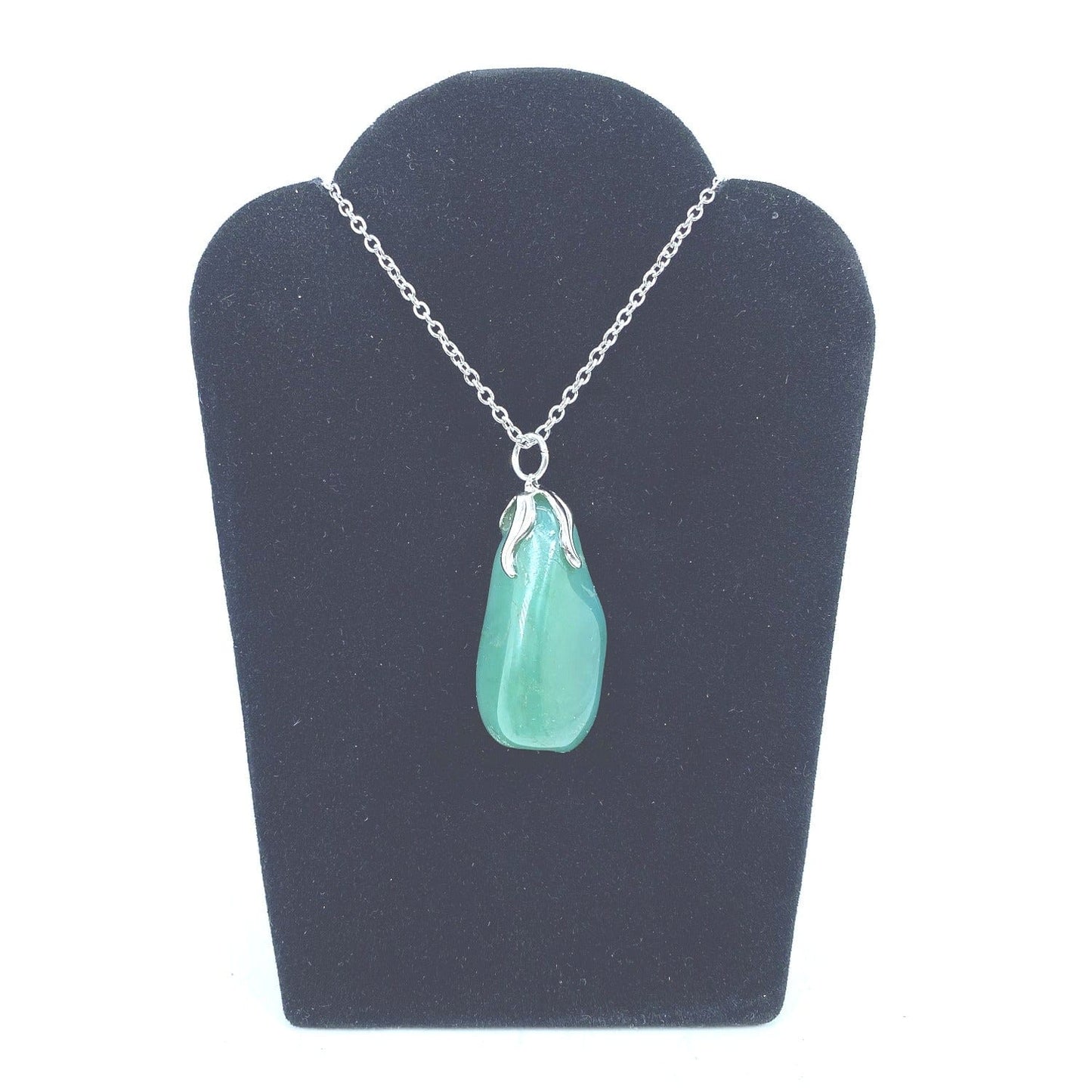 Natural polished green agate pendant, available in stainless steel necklace or black rubber wire. Agate, once worn, will convey to you its sense of stability, the courage and strength of its splendid crystals. Discover all the properties of Agate.