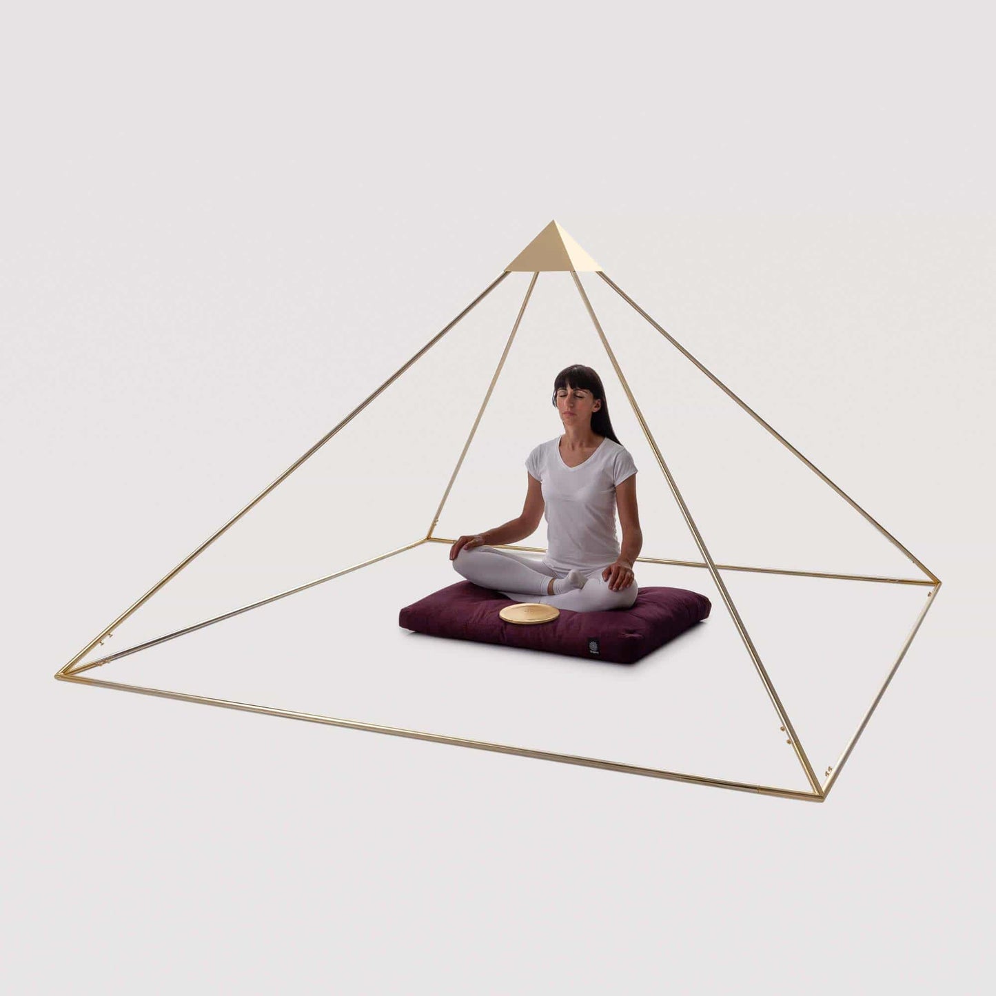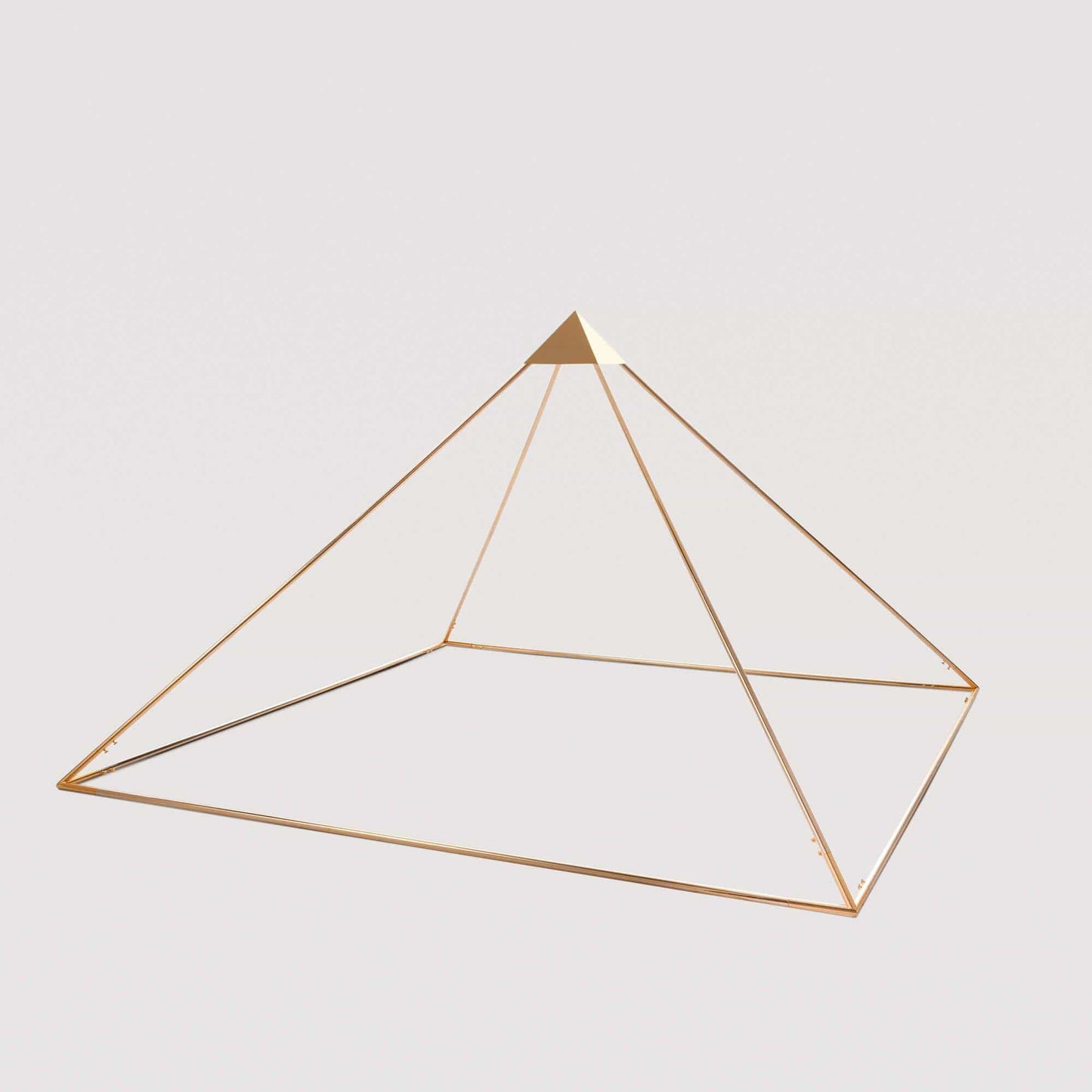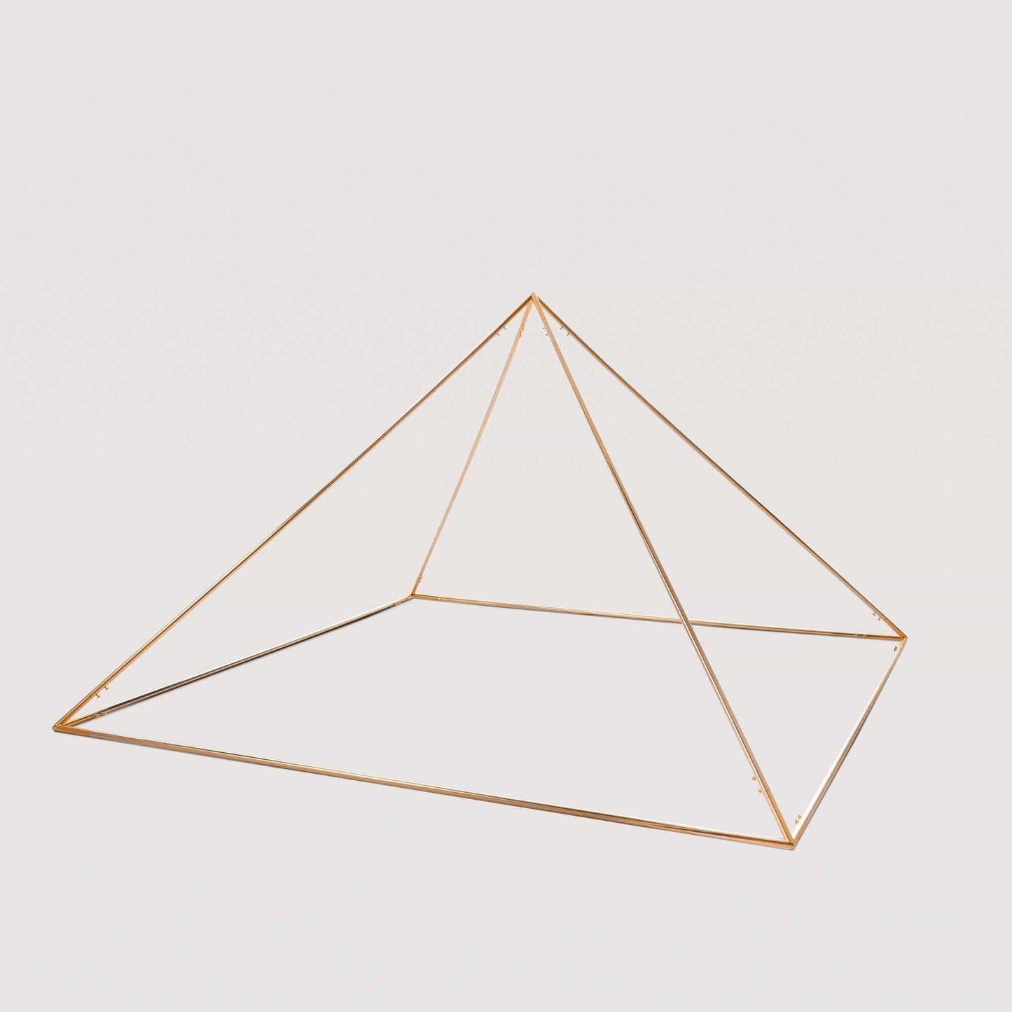This model of pyramid suitable for soft treatment and meditation made of golden brass tube measuring 232 cm in base and 147 cm in height perfectly reflects the dimensions of the famous Cheops pyramid in its 1:100 scale proportions . The angle of the Cheops model allows you to prolong the benefits given by the pyramidal energy compared to other pyramids with an advanced angle. It allows you to treat both people, foods and objects according to the principles of pyramidotherapy. Suitable for individual and group meditation . The maximum result of group meditation is obtained with subjects positioned back to back. For individual and group treatment we recommend using the professional concentrator or, alternatively, 4 concentrators with a diameter of 8 cm. The concentrator and hat are not included in the price .