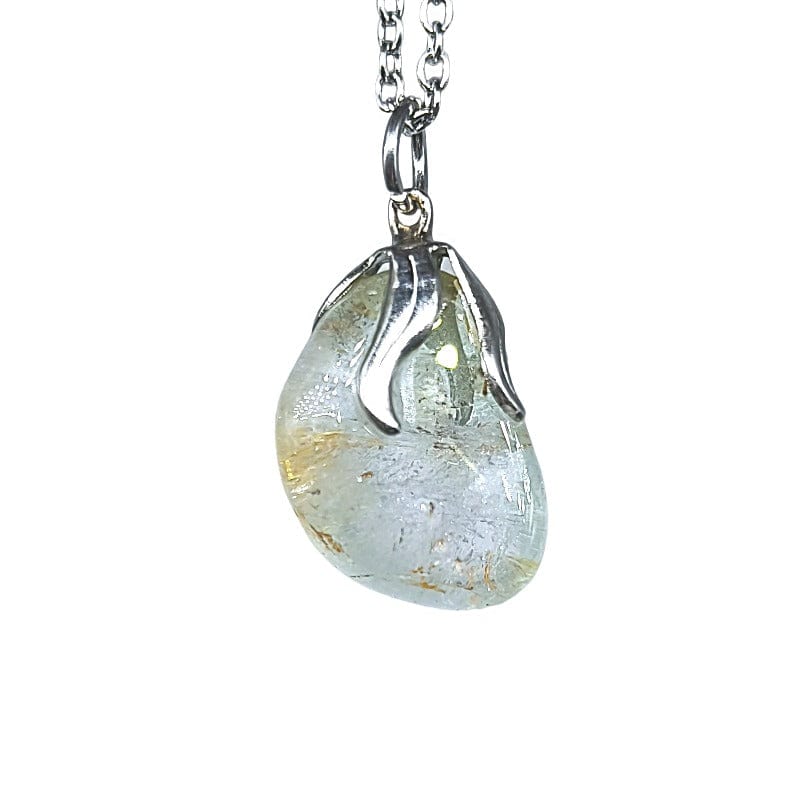 Collar colgante de topacio azul pulido natural. Esta piedra da simultáneamente vitalidad y buen humor , disuelve los pensamientos negativos, fortalece la capacidad de realizarse a uno mismo y ayuda a afrontar la vida con sabiduría . Permite al individuo descubrir su profundidad y riqueza, promueve la sinceridad con los demás y consigo mismo y empuja a comunicar emociones.