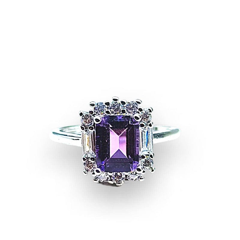 Ametista Sfacettata Rettangolare con Cristalli - anello regolabile in ottone anallergico