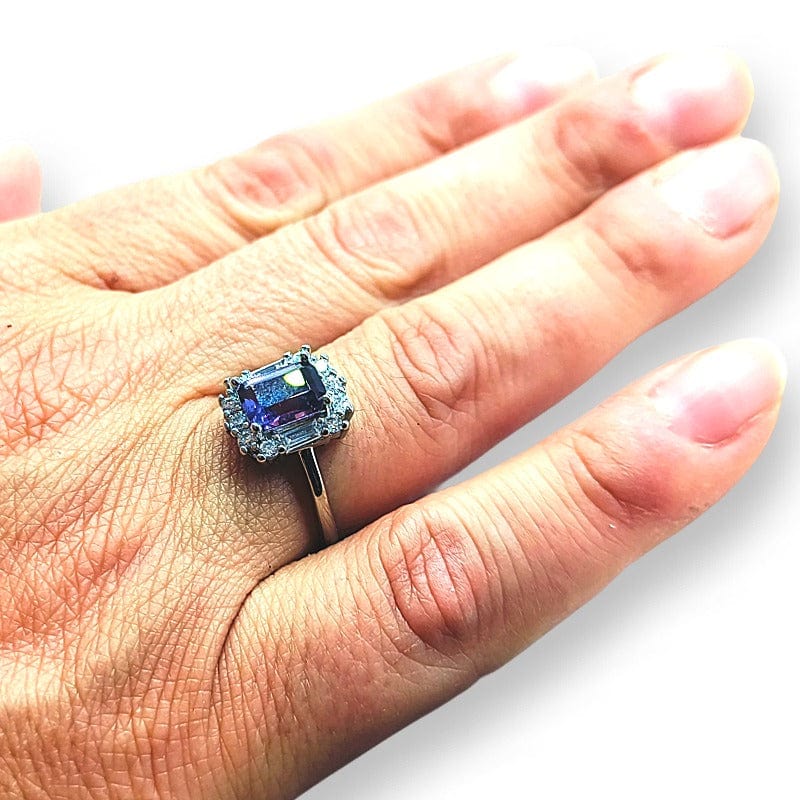 Anello REGOLABILE in pietra dura naturale di Ametista Sfacettata Rettangolare con Cristalli
