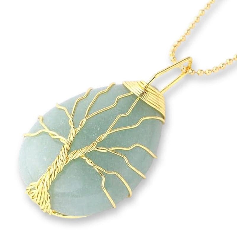 Ciondolo "goccia" con albero in Avventurina - Dorata con catenina
