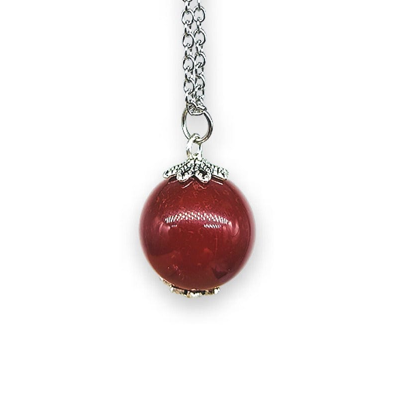 Ciondolo Sfera in Corniola 18/20mm, pietra dura naturale, e collana argentata inossidabile. Disponibile con catenina in acciaio inox o caucciù..