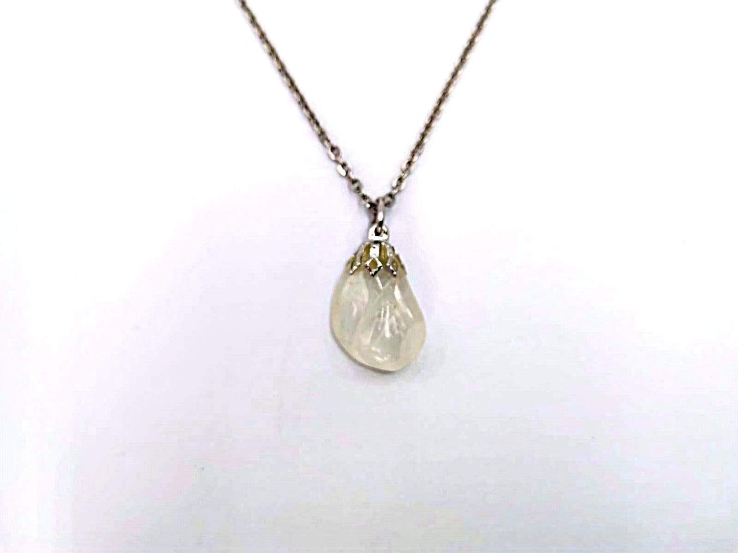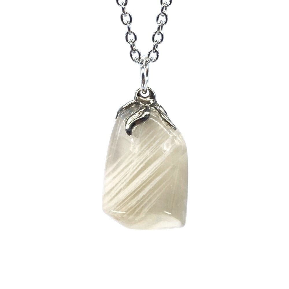 Ciondolo in Pietra di Luna burattata, pietra dura naturale, disponibile con catenina in acciaio inox o filo in caucciù nero. Per le proprietà della Pietra di luna clicca qui.