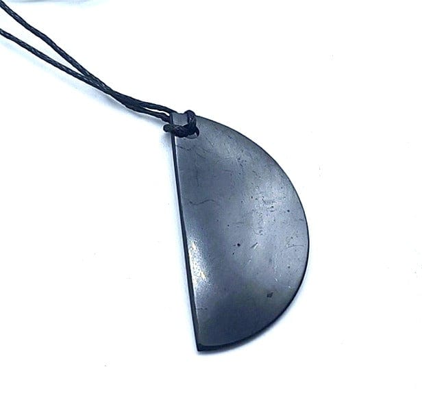 Collana con ciondolo lavorato a forma di "mezzaluna" e cordoncino in fibra naturale. Assorbe e scherma le energie elettromagnetiche.